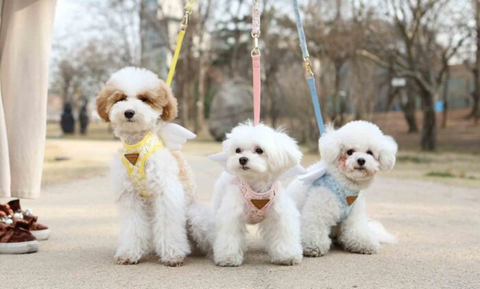 Modèles : Maltais (2,4kg) en taille S, Caniche (2,4kg) en taille S, Bichon Frisé (3kg) en taille S