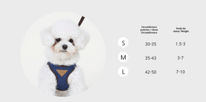 Modèles : Maltais (2,4kg) en taille S, Caniche (2,4kg) en taille S, Bichon Frisé (3kg) en taille S