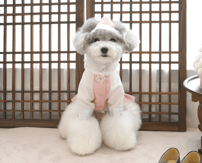 - Détails : Des liens décoratifs traditionnels (appelés norigae) ou des rubans peuvent pendre de l’hanbok, ajoutant une touche ludique tout en reflétant l’héritage coréen. Les couleurs vives et les détails délicats de la conception confèrent à votre chien une apparence distinguée et noble.