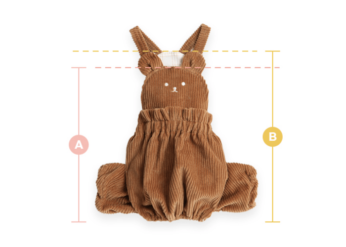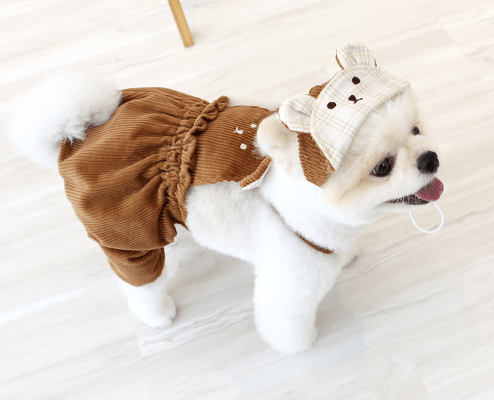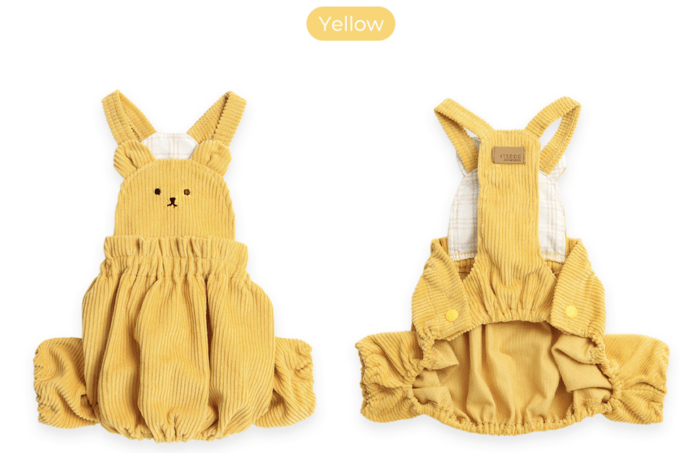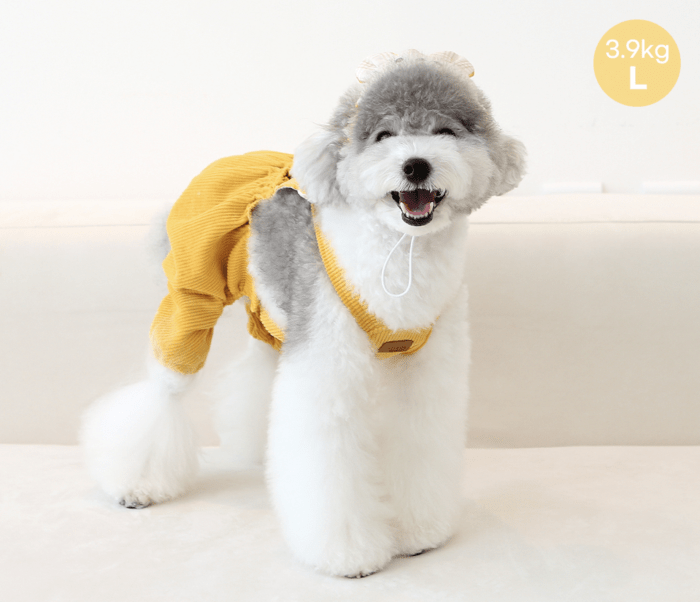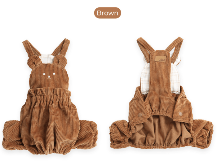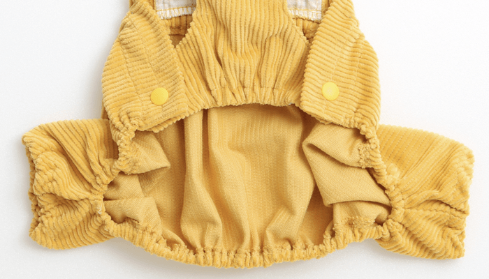 Très confortable, les boutons permettent un habillage super facile, et le tissu en velours côtelé est de grande qualité. Pour un look encore plus mignon, vous pouvez même porter un t-shirt dessous ! L’élastique à la taille et aux jambes aide à prévenir la contamination avec l’urine.