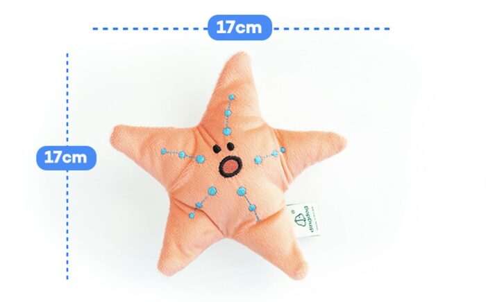 Ce jouet pour chien étoile de mer, avec sa texture douce et moelleuse, fait son entrée ! Votre petit compagnon adorera le son qu’elle fait lorsqu’il la mordille. De plus, vous pouvez cacher de petites récompenses dans la poche centrale pour un jeu stimulant qui développera son sens de l’odorat. Un jouet interactif et amusant pour des heures de plaisir !