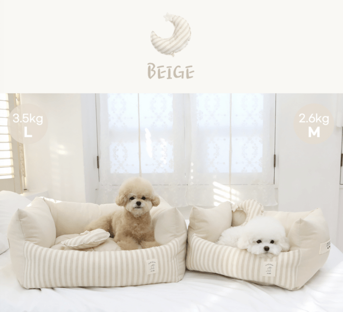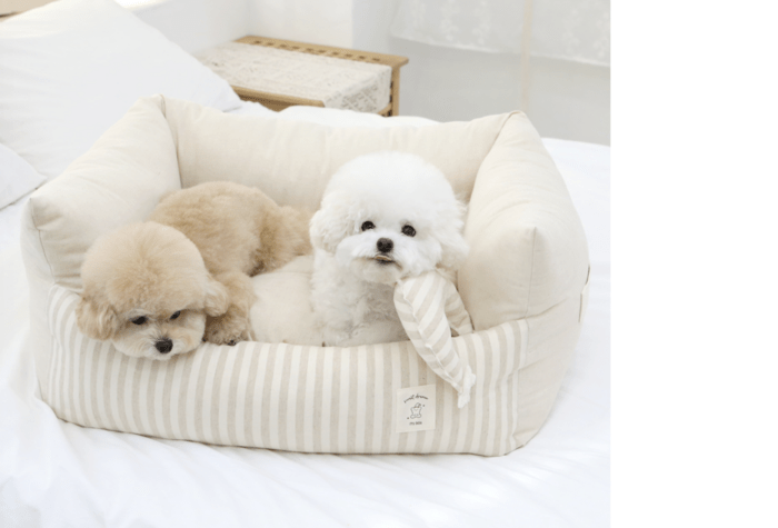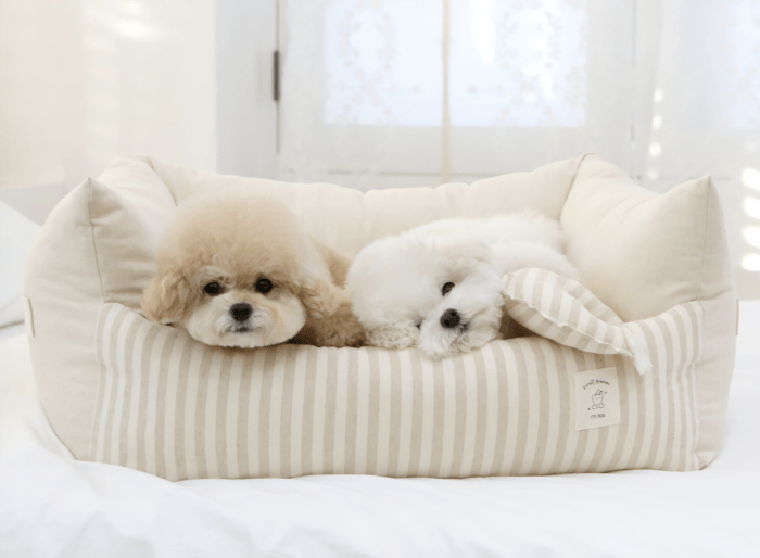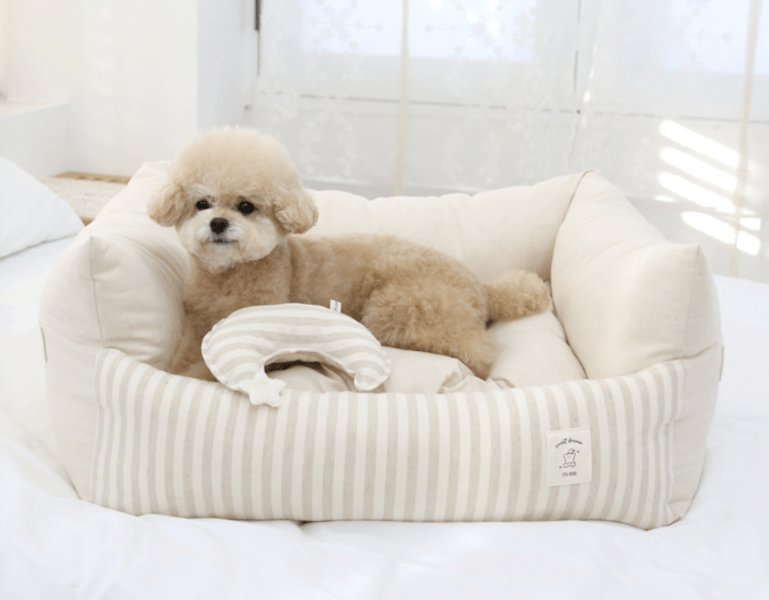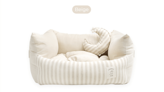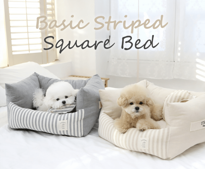 The bumper-style square bed offers a cozy space for dogs to rest and lean on. The simple, clean fabric is complemented by striped accents in coordinating colors, while convenient handles on both sides make it easy to move. This bed also comes with a charming pillow for an extra touch of cuteness.